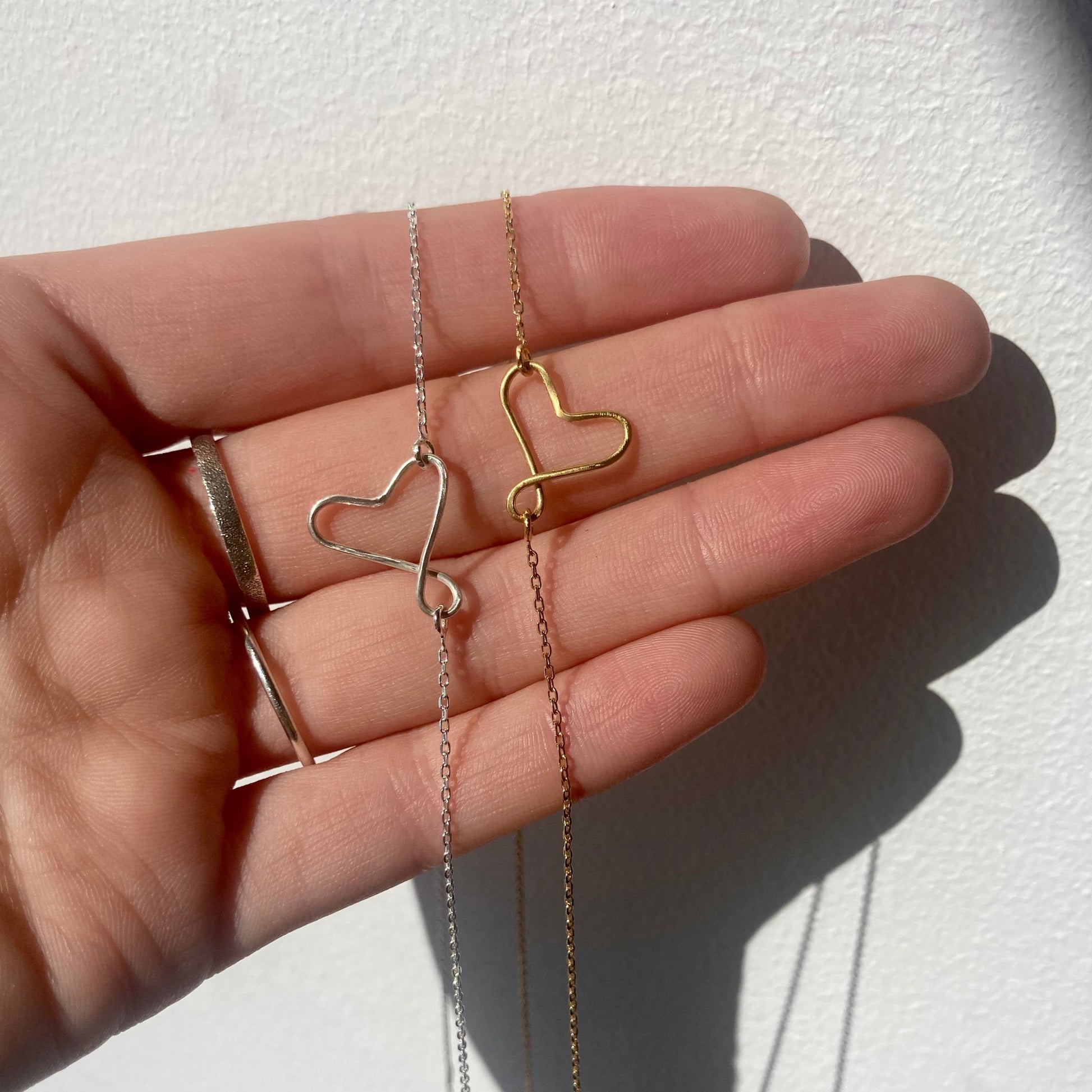 Designed & sustainably crafted by hand with recycled sterling silver. The infinity heart delicately hangs from a recycled sterling silver mesh chain. This piece has been shaped, cut, soldered, filed & polished by hand. A lot of care and attention has gone into making this piece, from the design phase to finely crafting. The gold option is electro-plated with 1 micron of 24K gold. We hope you love wearing this piece as much as we do making it!