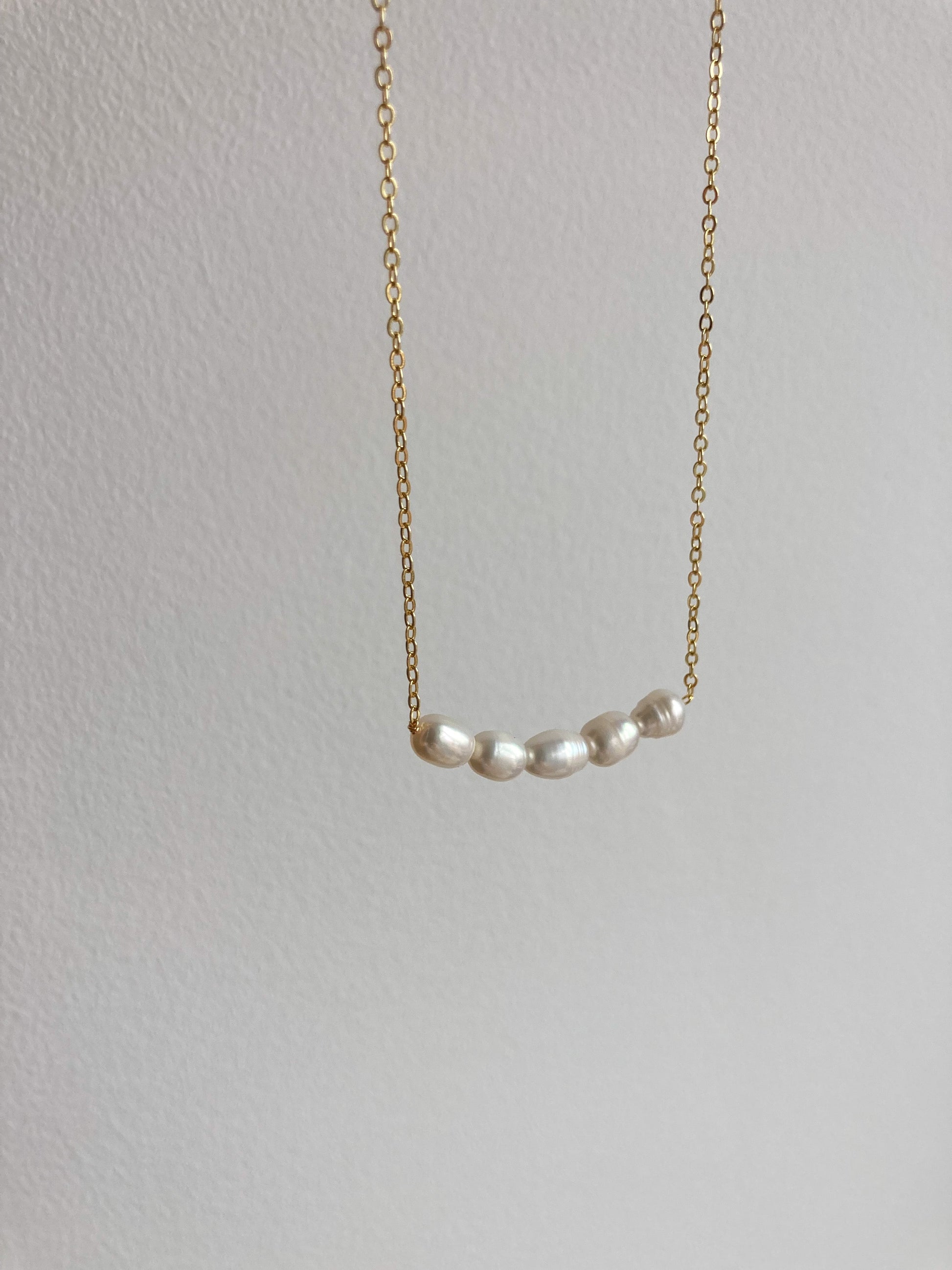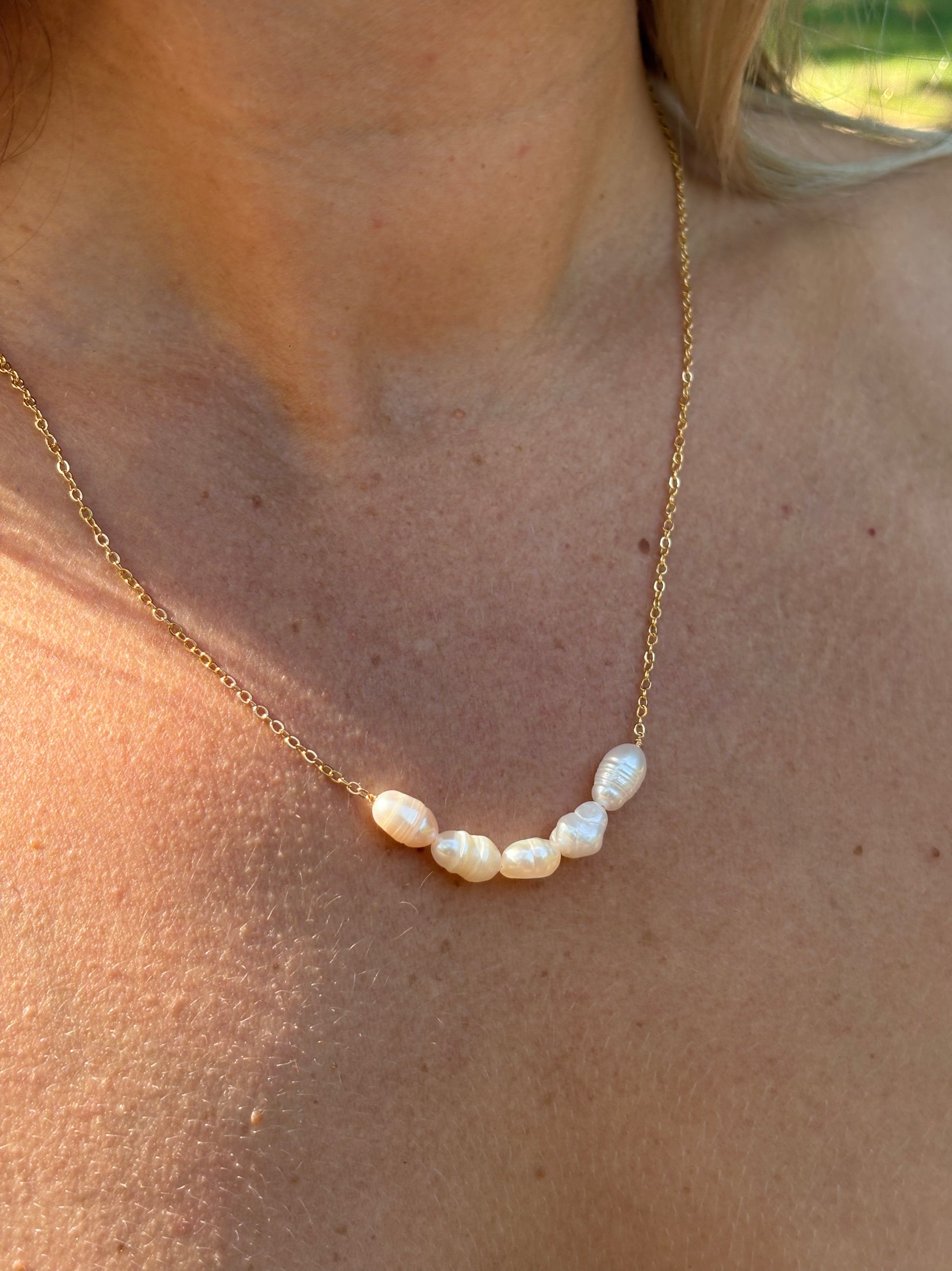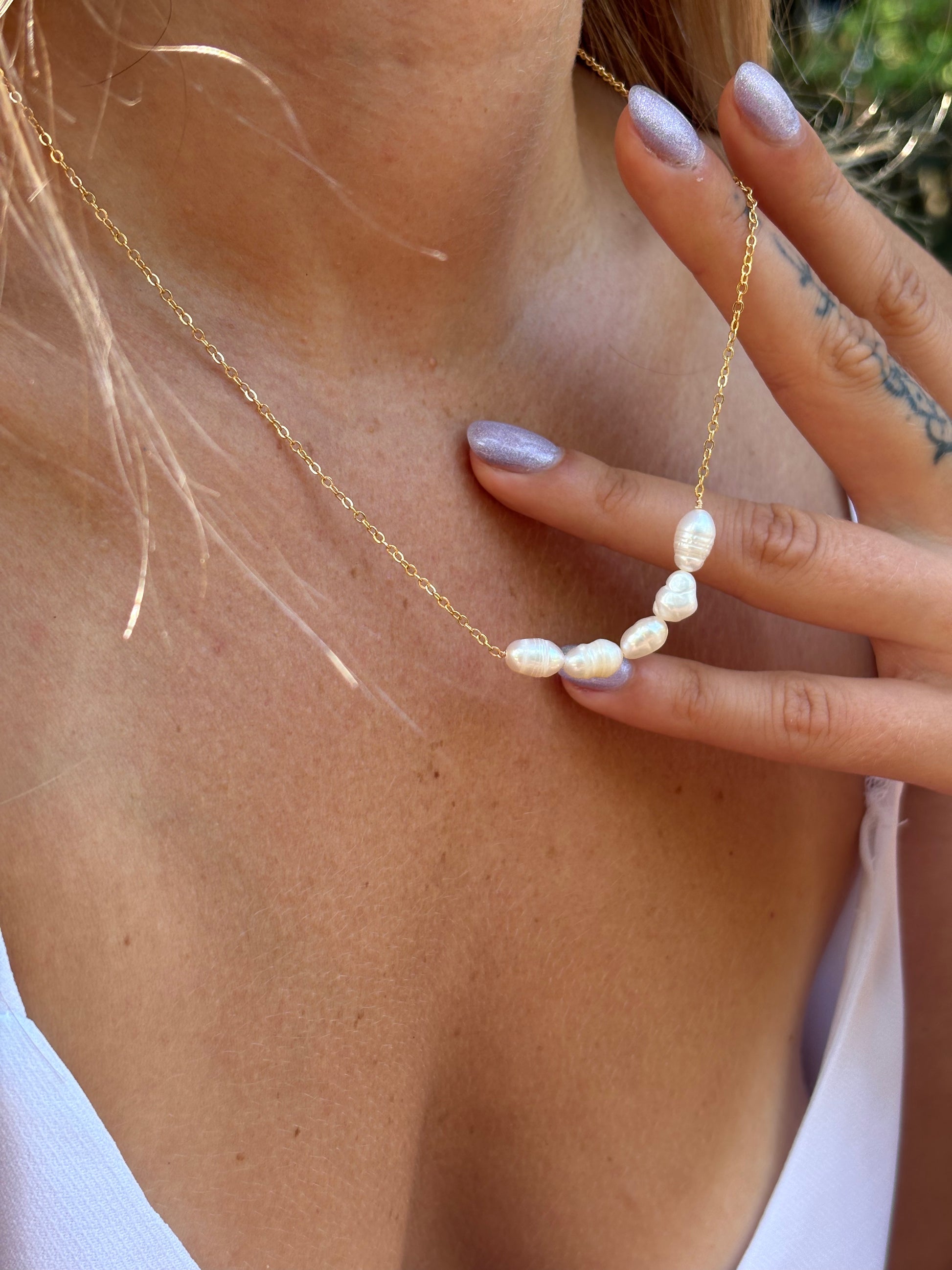 - Materials: Freshwater pearls, gold plated stainless steel chain & wire
