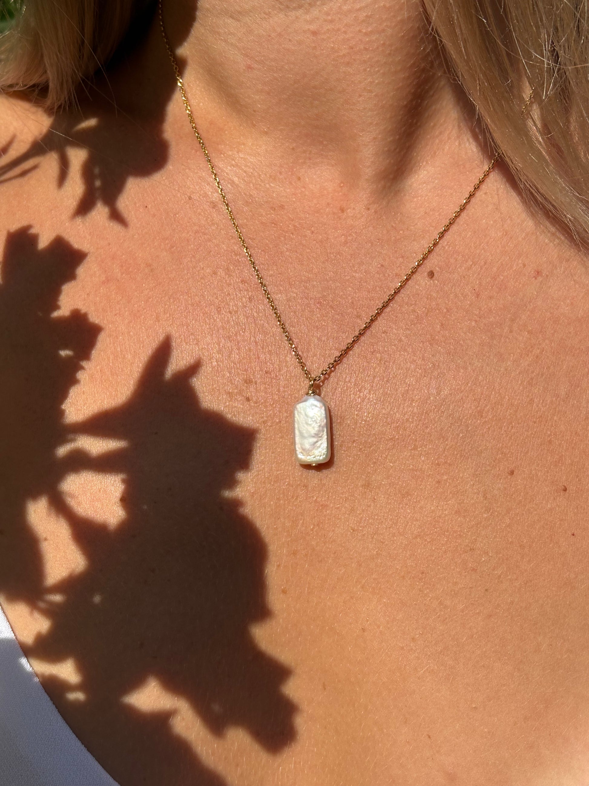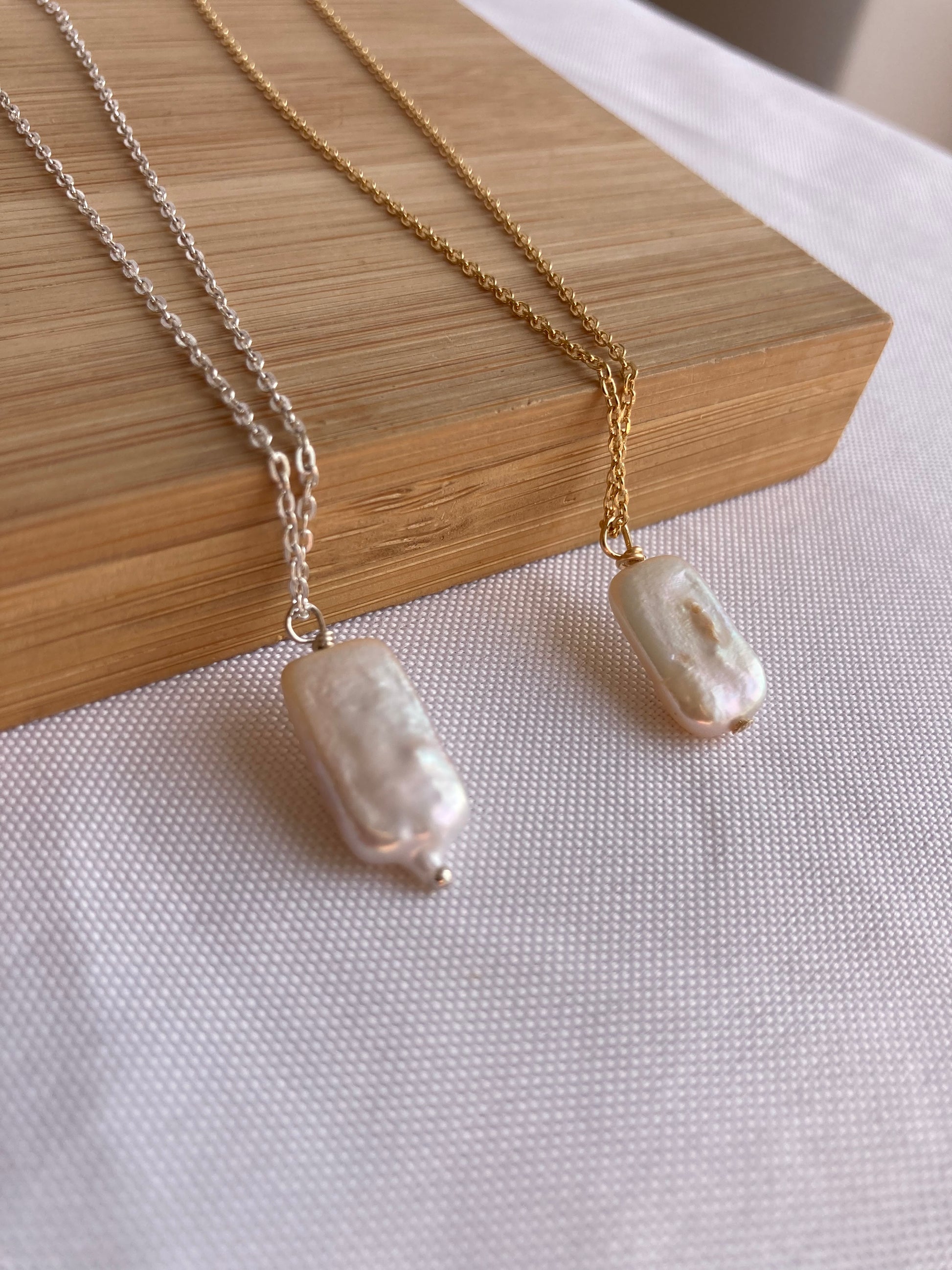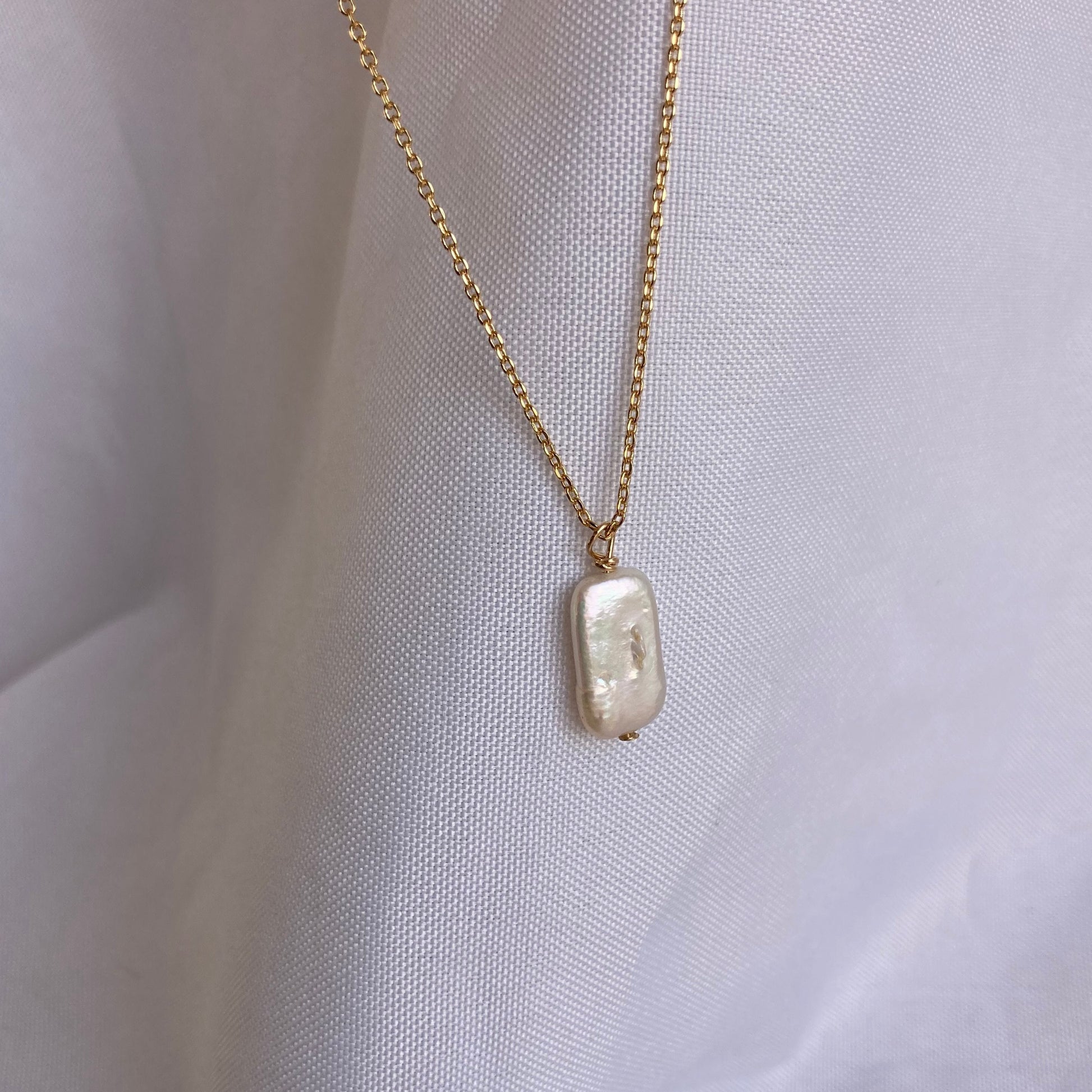 - Materials: Gold vermeil or 925 Sterling silver chain & a freshwater baroque square-shaped pearl